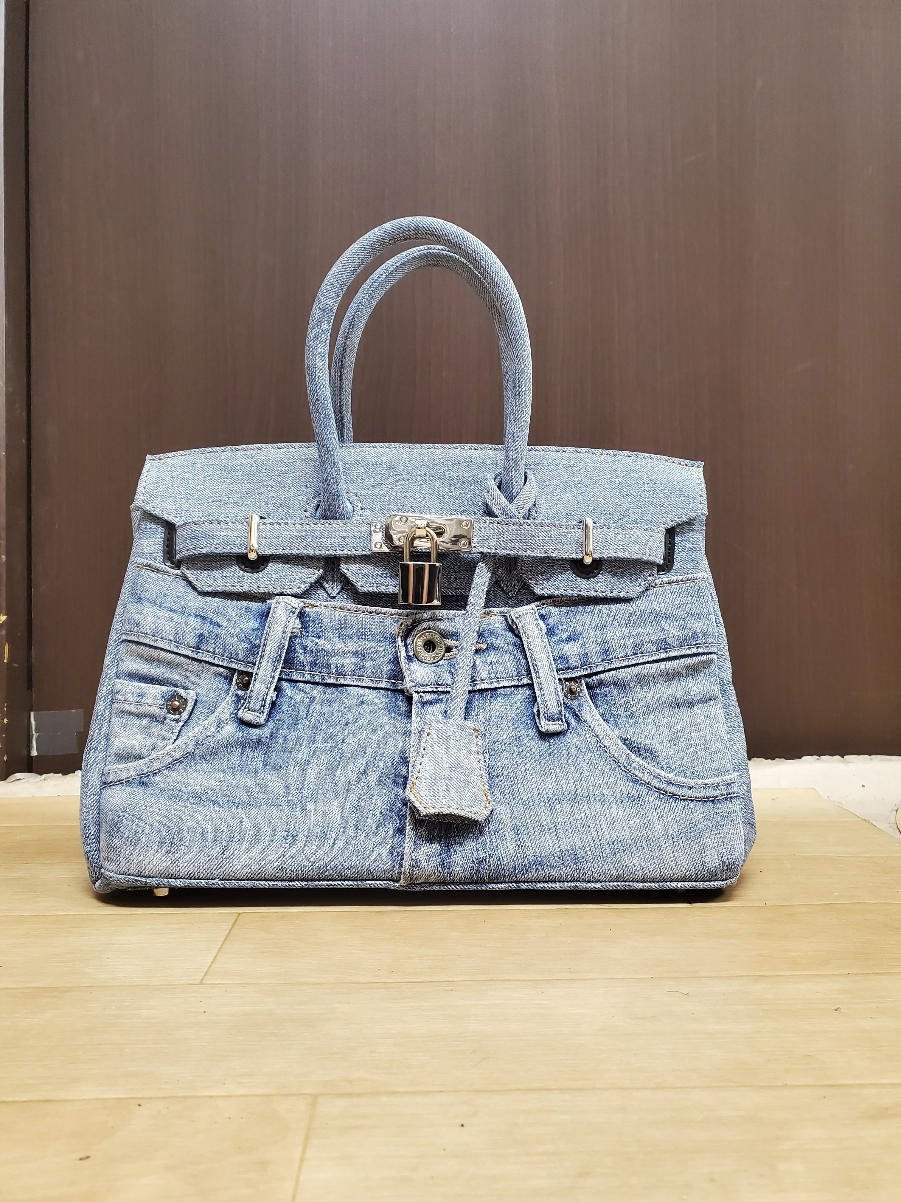 Adult cute celebrity purveyor Birkin-style jeans remake bag