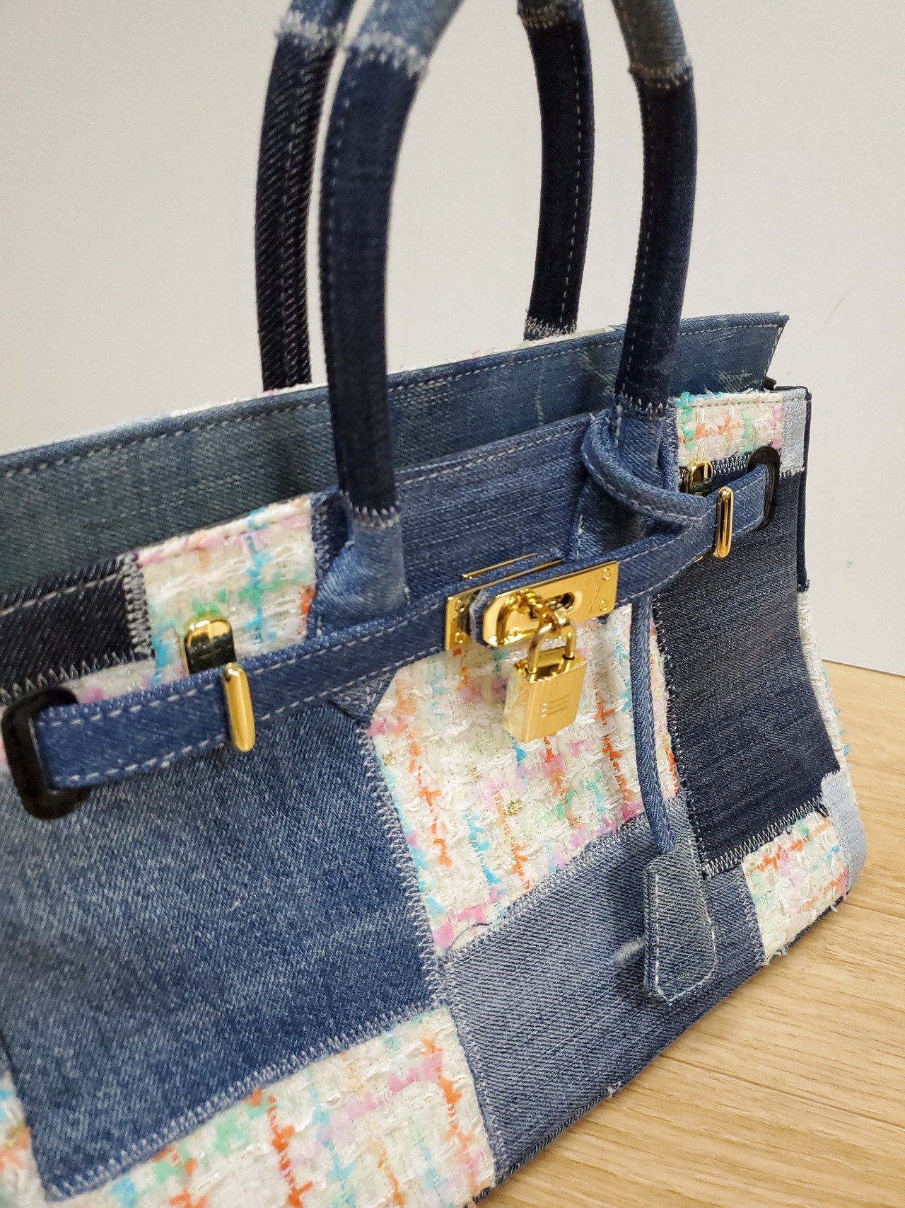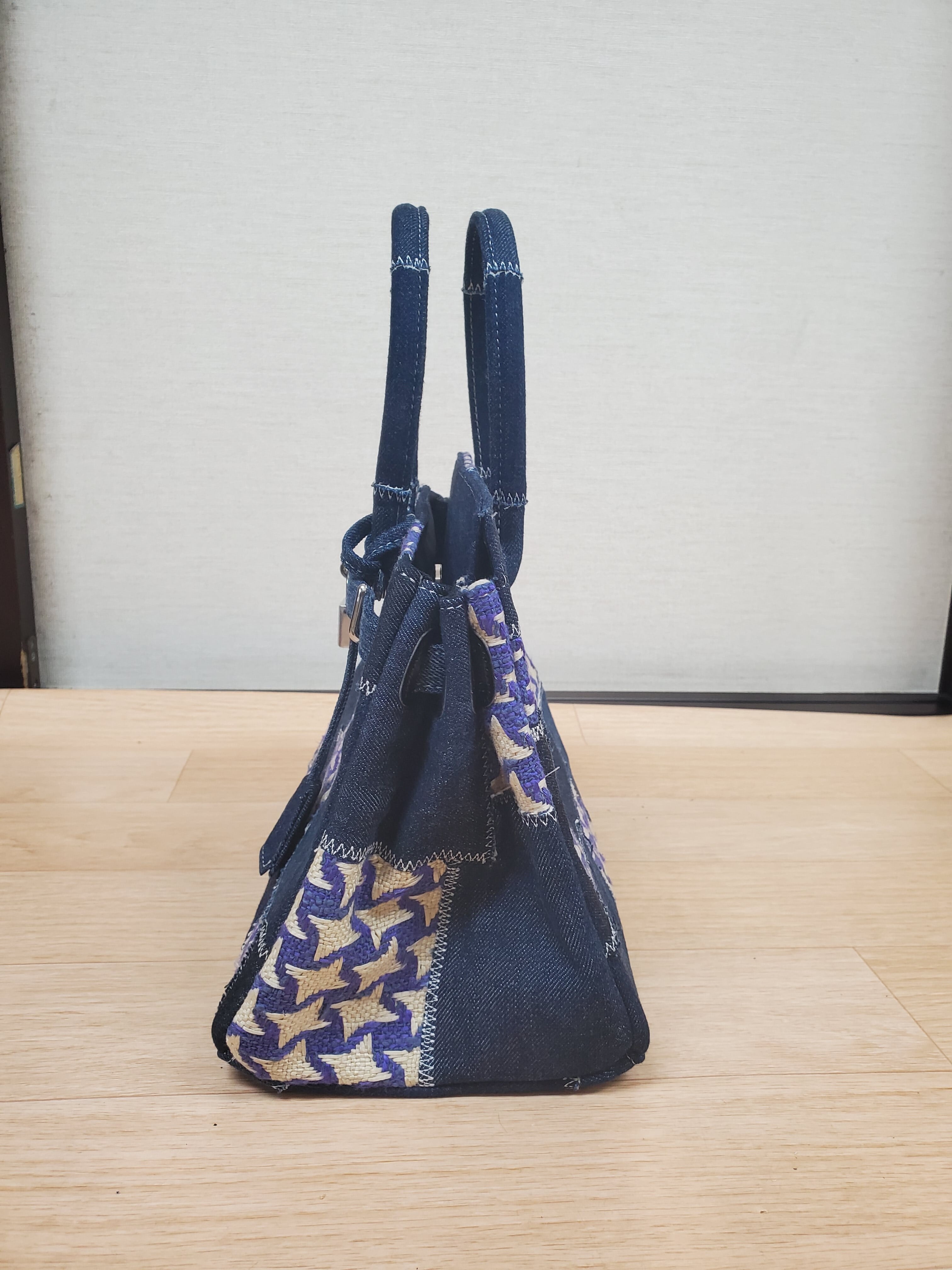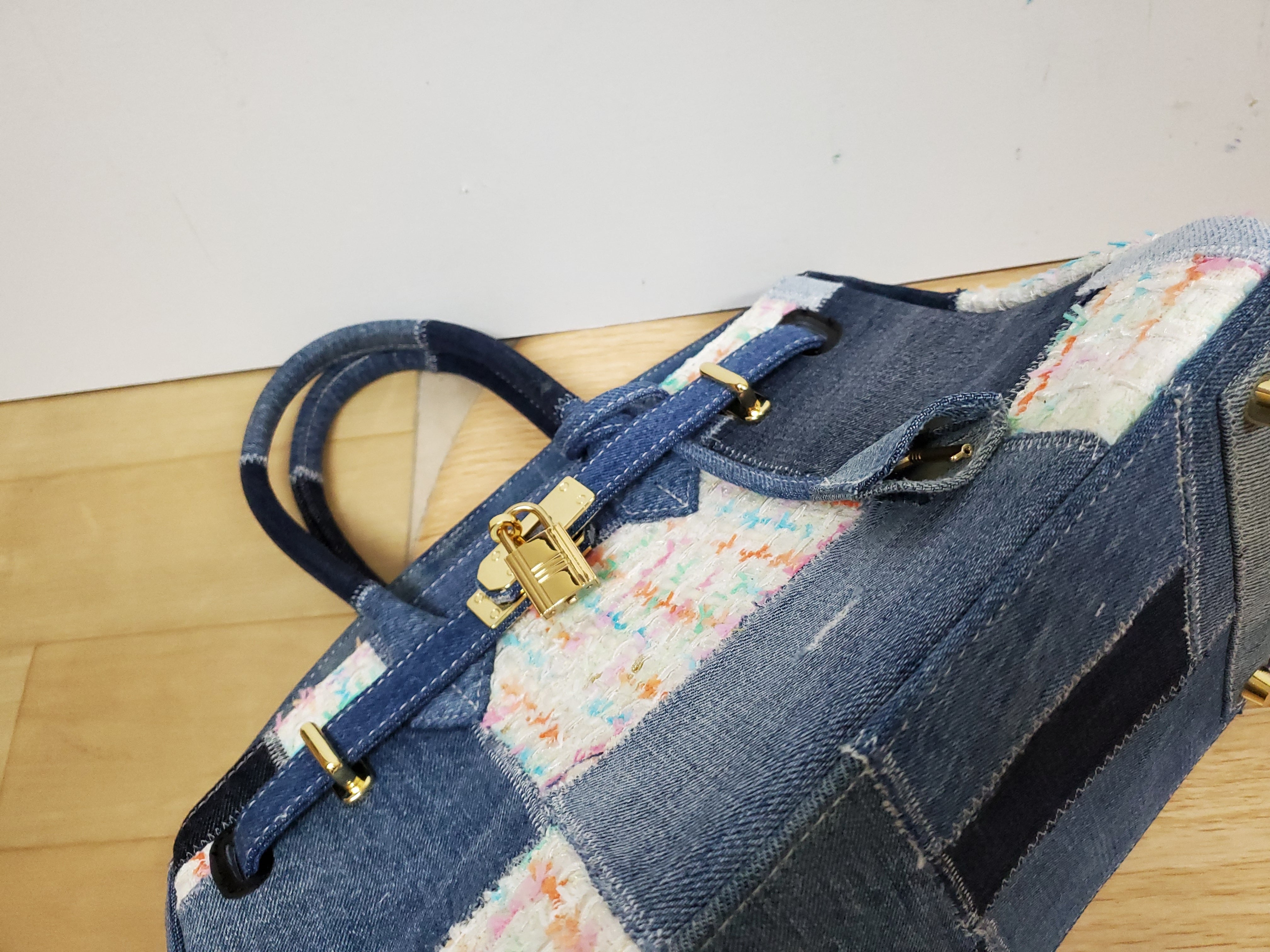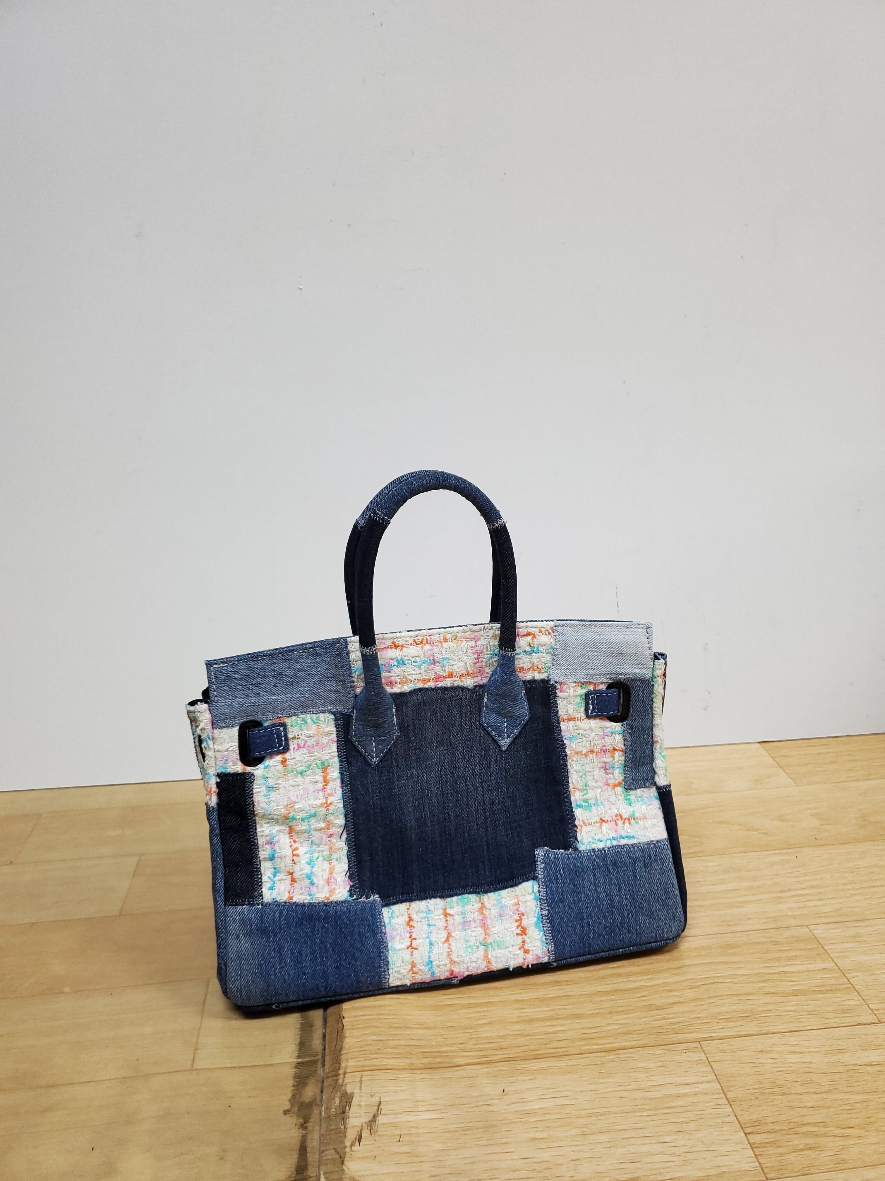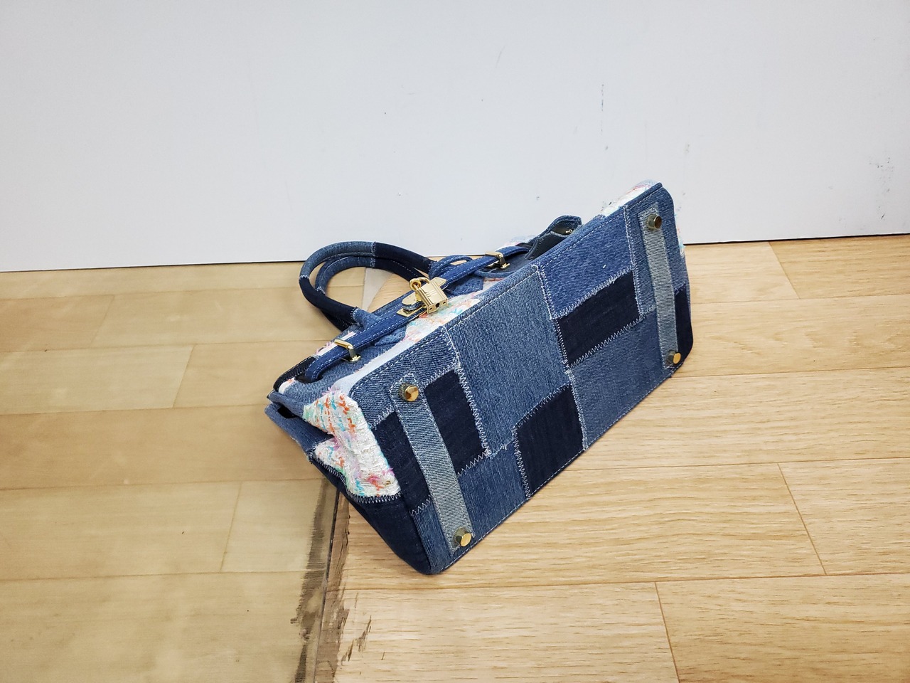 デニムリメイクパッチワークバッグ 30cmタイプ リントンツイード使用 Denim remake patchwork bag 30 cm type Linton tweed used | かばんのJ・I・C
