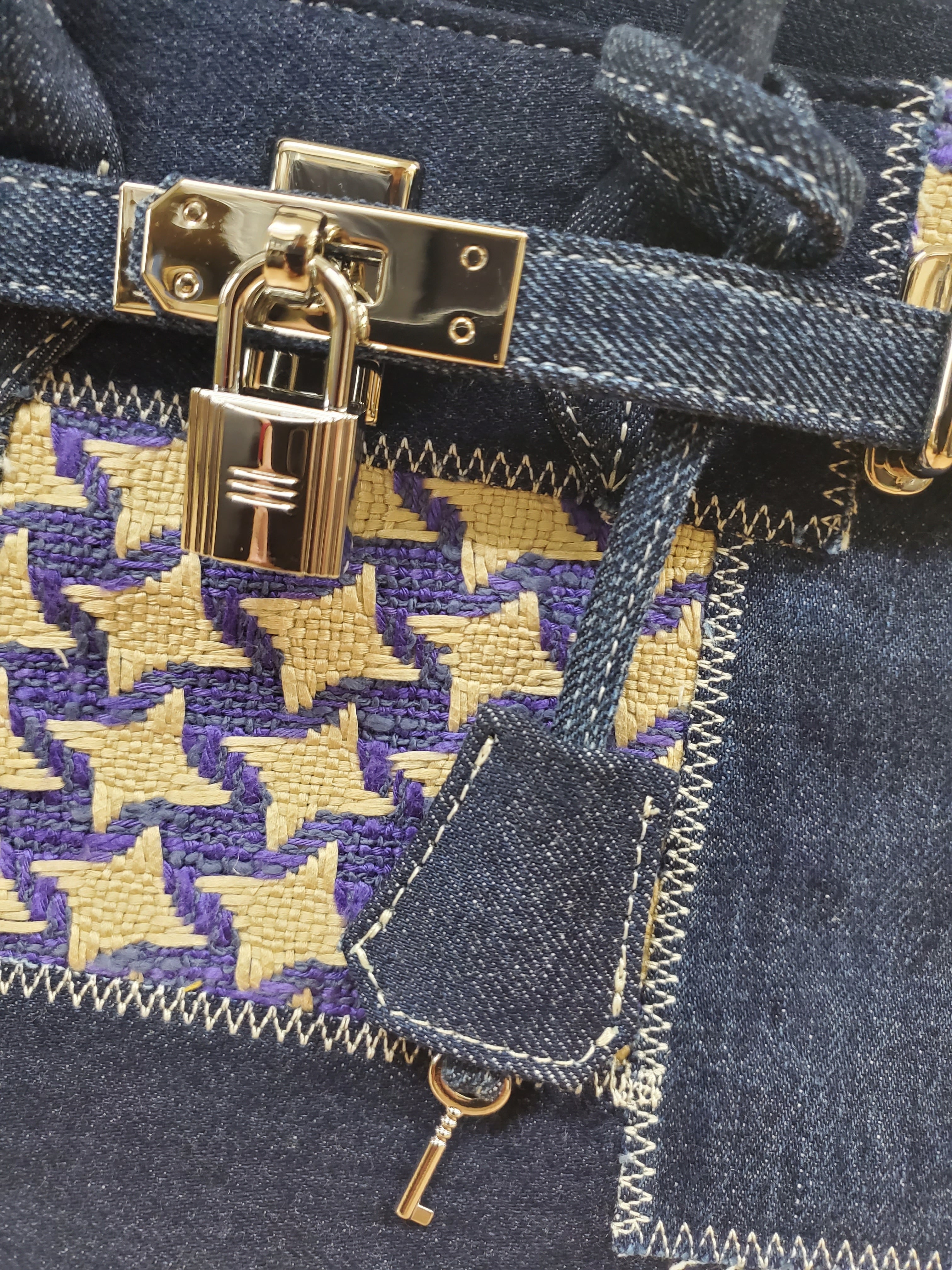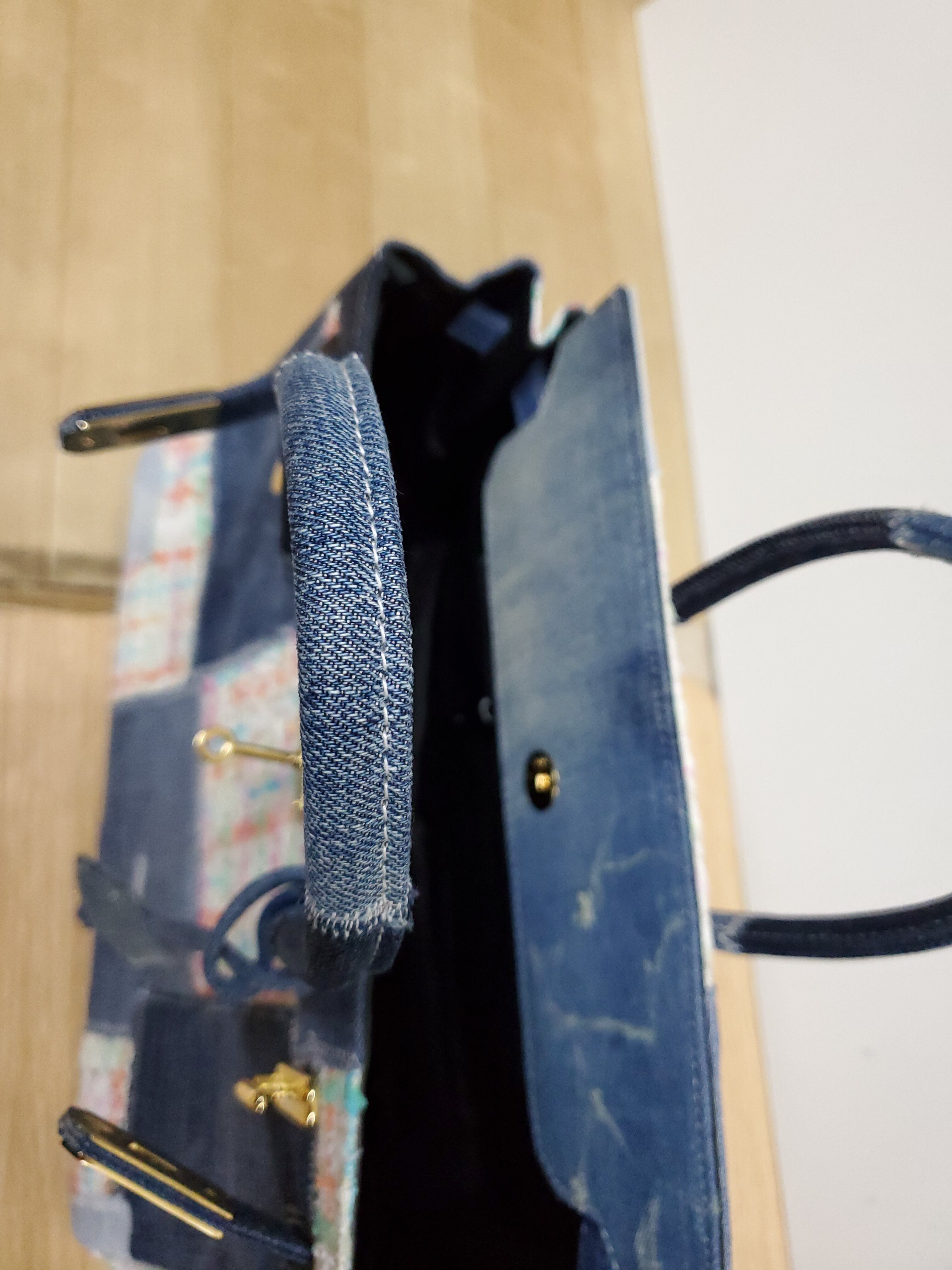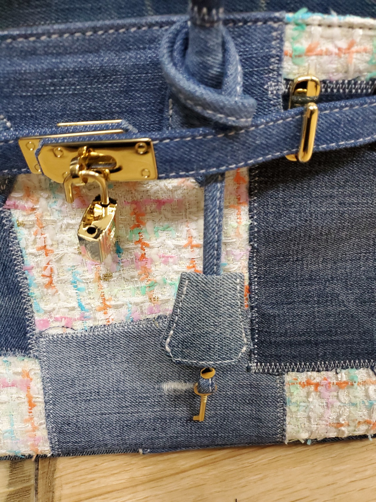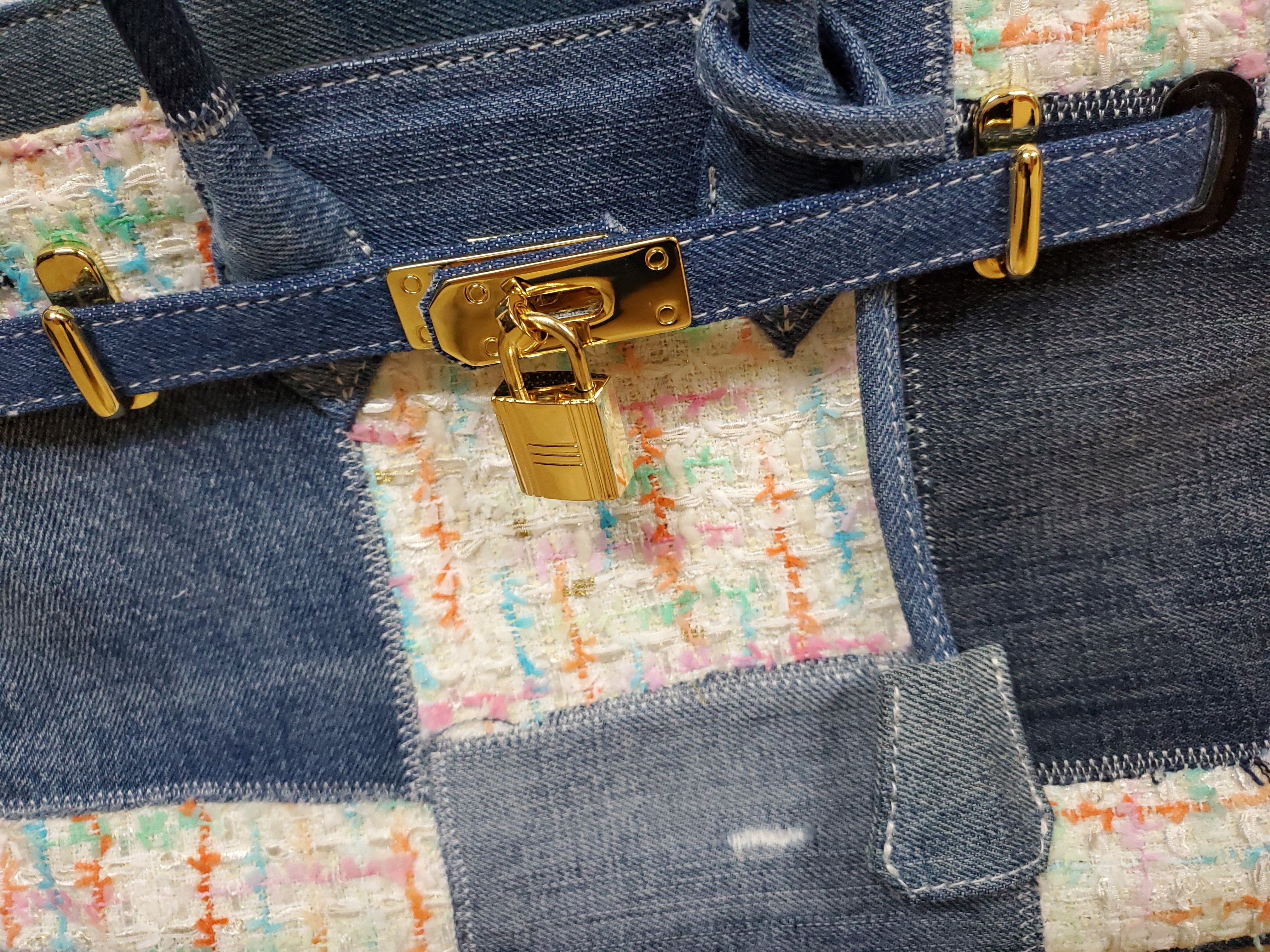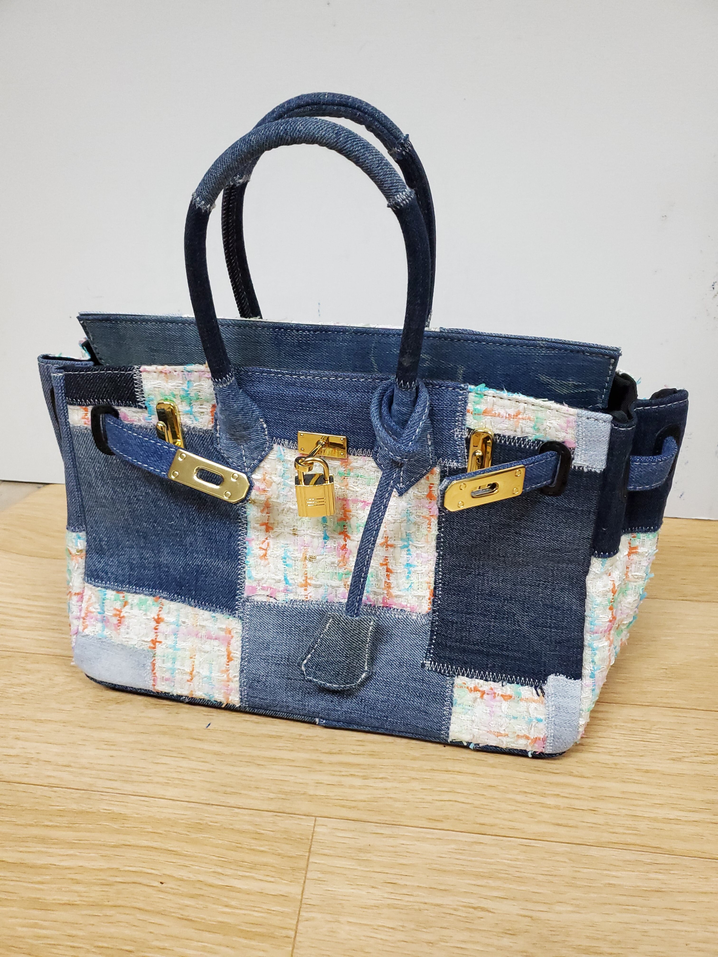デニムリメイクパッチワークバッグ 30cmタイプ リントンツイード使用 Denim remake patchwork bag 30 cm type Linton tweed used | かばんのJ・I・C