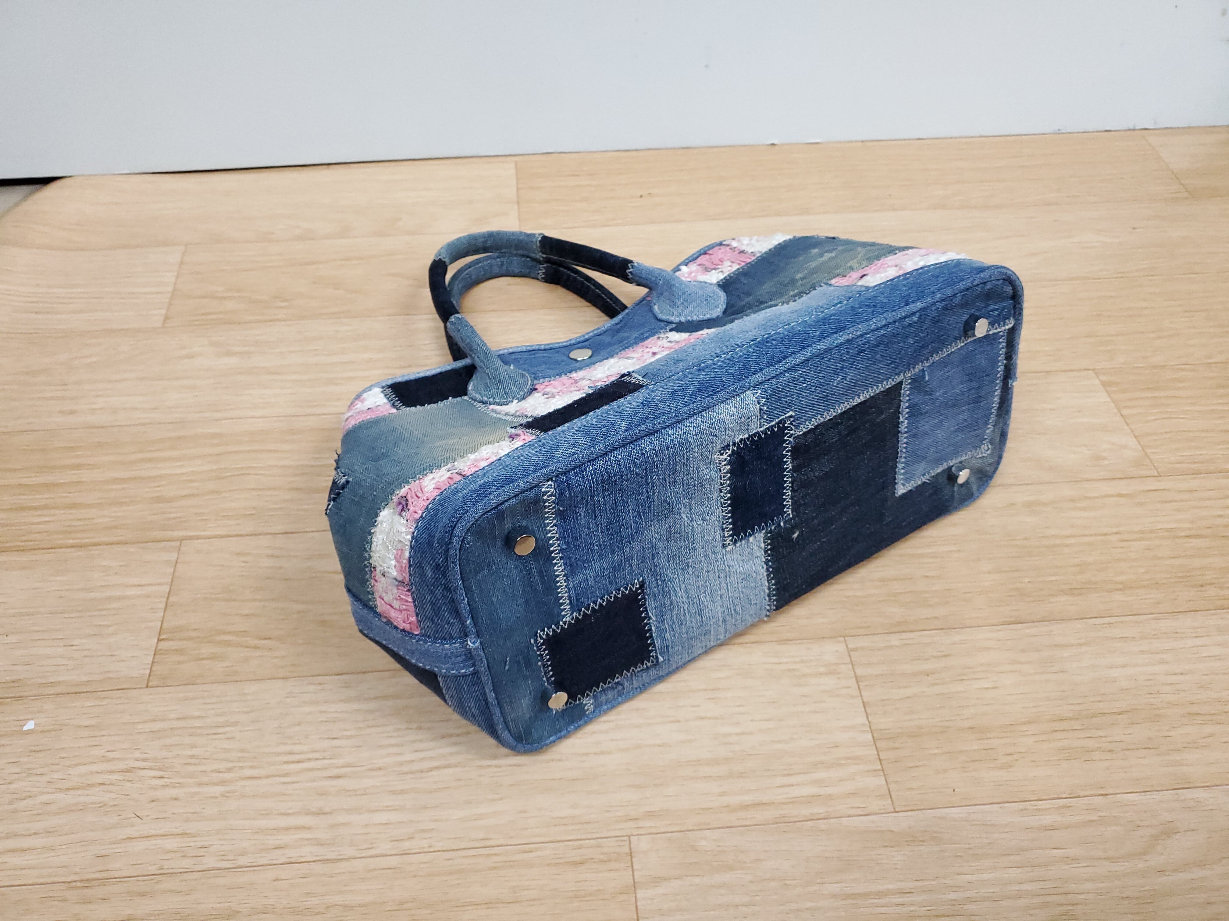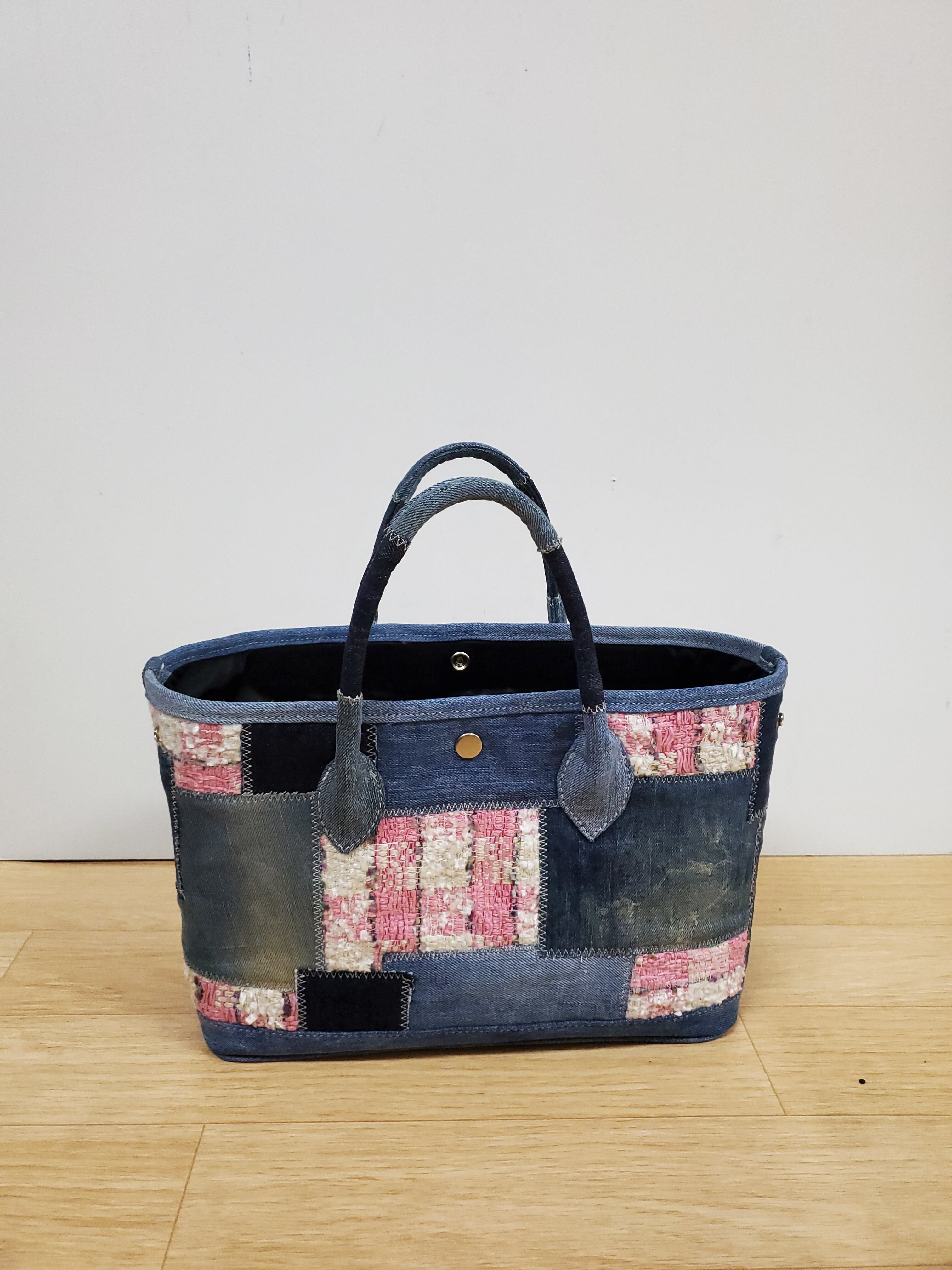 在庫ありsale リントンツイードプラスデニムパッチワークトートバッグ ガーデンパーティー風 30cmタイプ In Stock Sale Linton Tweed Plus Denim Patchwork Tote Bag Garden Party Style 30cm Type