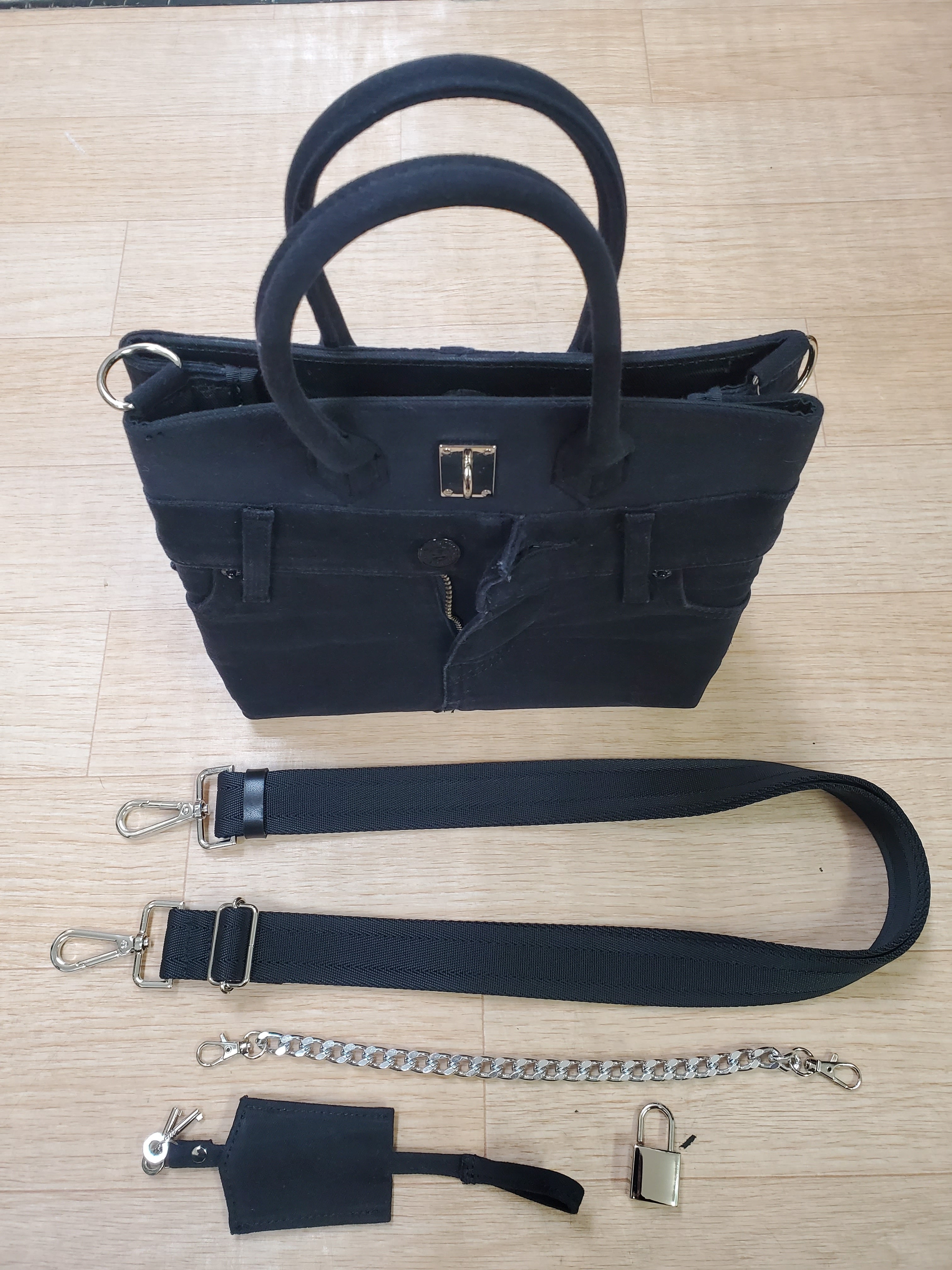 流行りの小さめなサイズ感と便利な取り外し可能なストラップ付き 又取り外し可能でオシャレなキーケース、シルバーチェーン付き アクセントに南京錠とキーも付きます