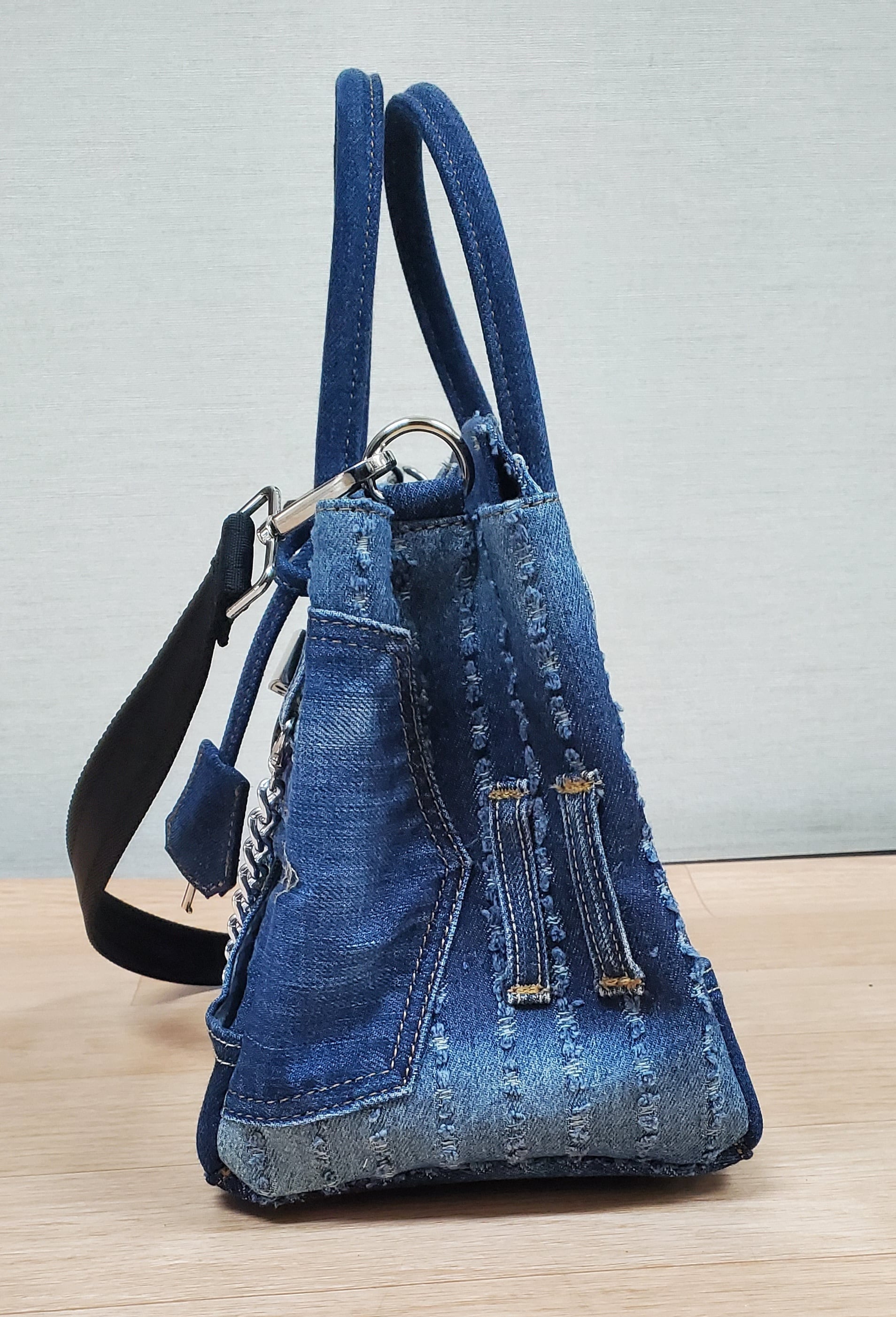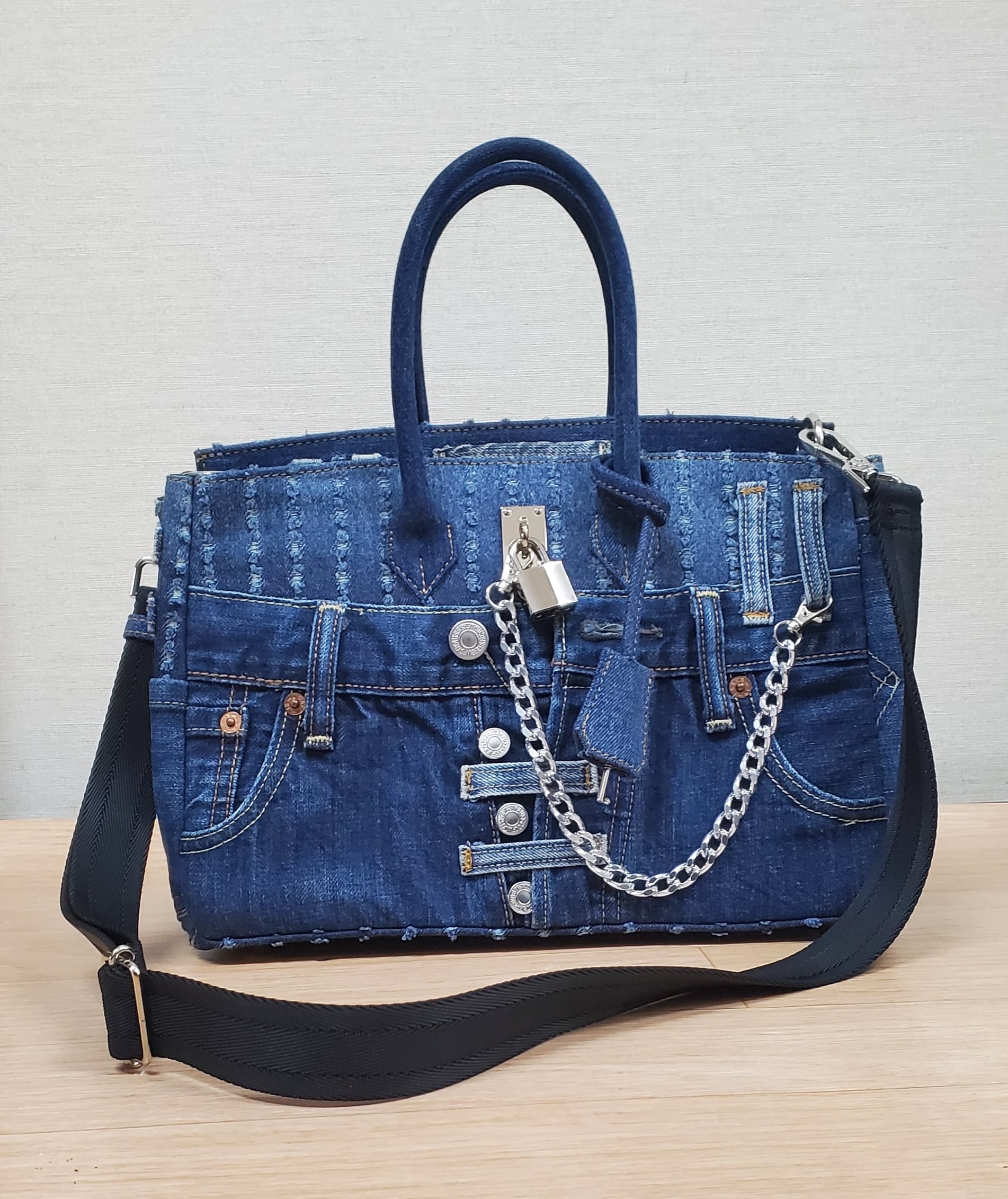 ヴィンテージジーンズをベースに、ダメージ加工ジーンズ生地とベルトループを使用した、世界に一つだけのオンリーワンバッグ!おしゃれな2WAYスタイルで、ショルダーとしても、ハンドバッグとしてもお使いいただけます。